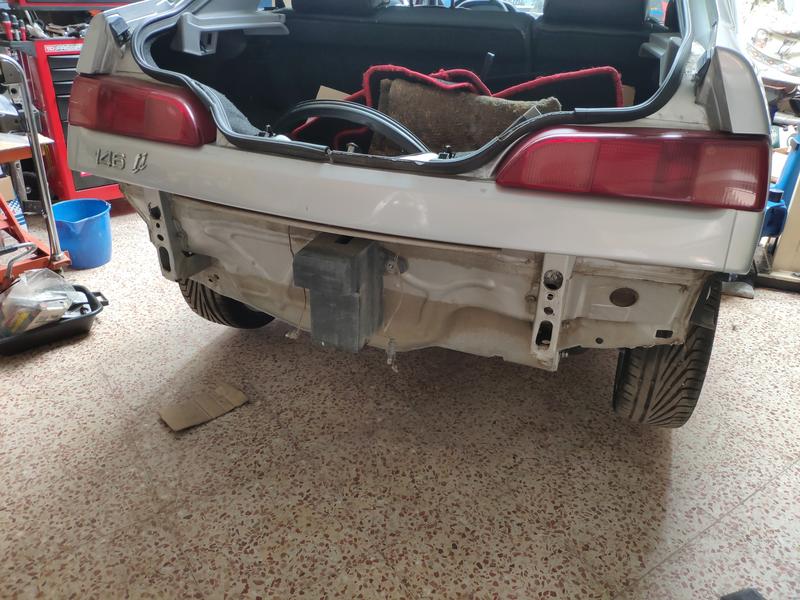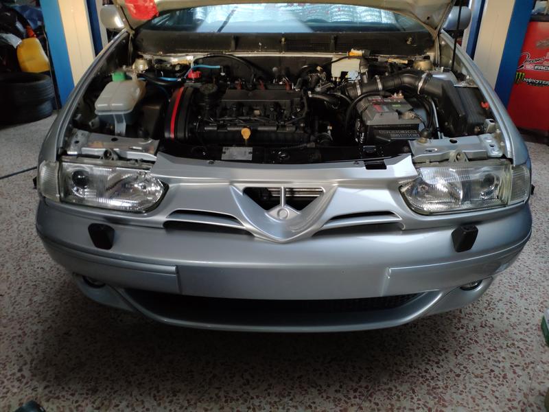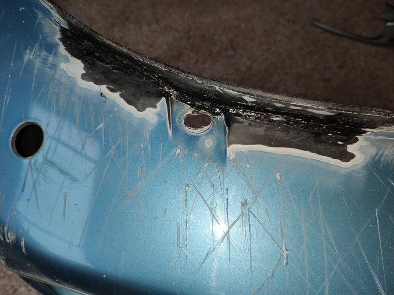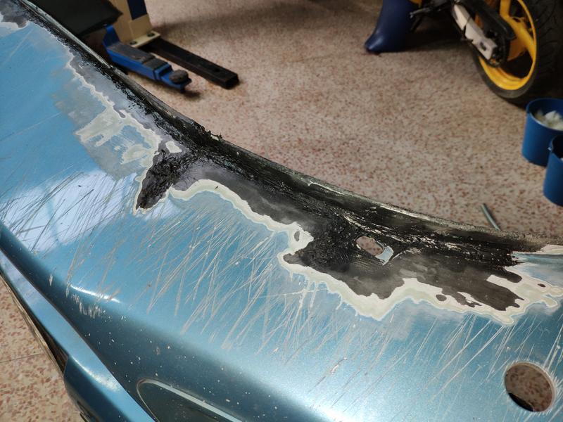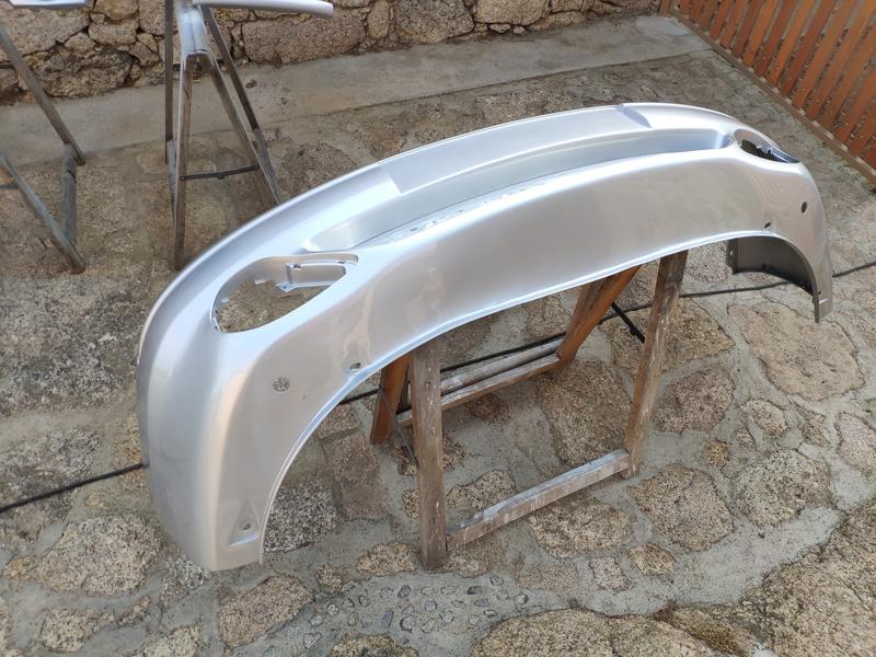 Ya metidos en tema pintura y tal, también estuve reparando el paragolpes que compré usado y preparándolo para ponerle los lavafaros. Un buen trabajo se hizo, estaba tocadillo, pero con pistola de calor, varilla del mismo plástico y paciencia, quedó muy fuerte.. tuve que reforzarle casi todo el borde inferior del paragolpes ya que estaba sobadísimo de engancharlo en aceras y vete a saber..