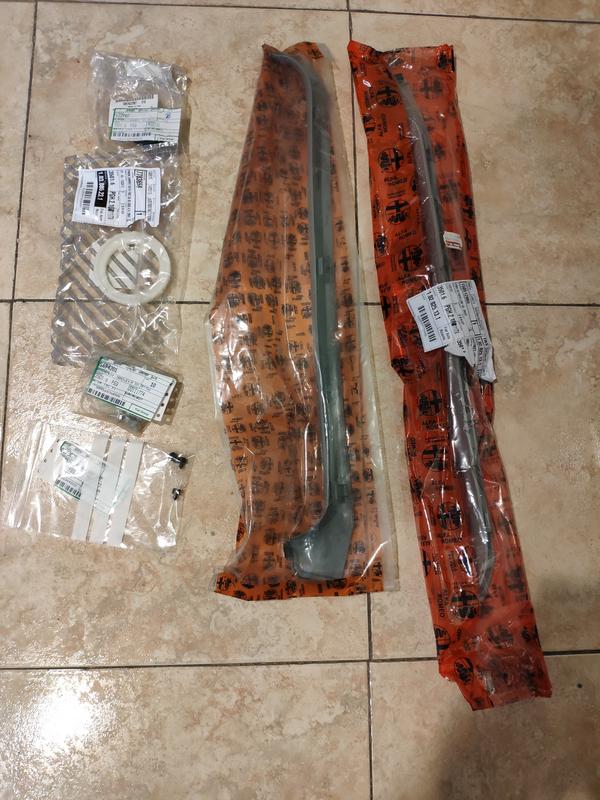 Ahí ya lo dejé que endureciese bien antes de hacer nada con él y me lié con otras cosillas. Me llegaron unos cuantos de recambios originales, que ilusión ver todas las bolsitas de Alfa Romeo jejeje. Unas molduras del portón traseras que las suyas están castigadas del sol, tornillería de los bajos, tuercas, arandelas y válvula antirretorno de los lavafaros y alguna que otra cosa, algunas cosas para el 145..