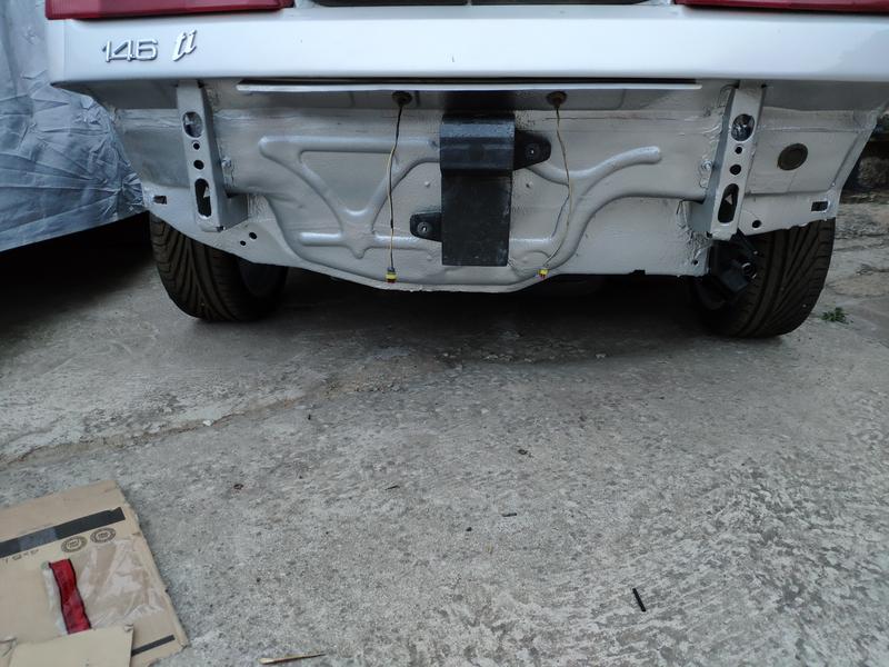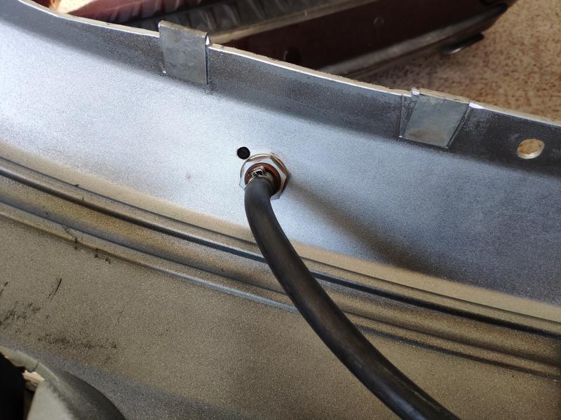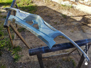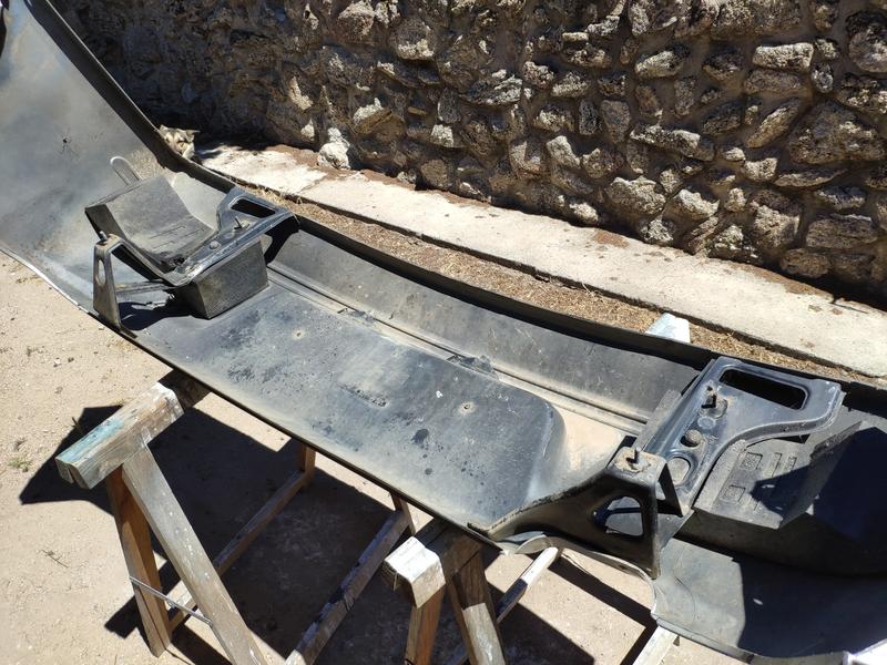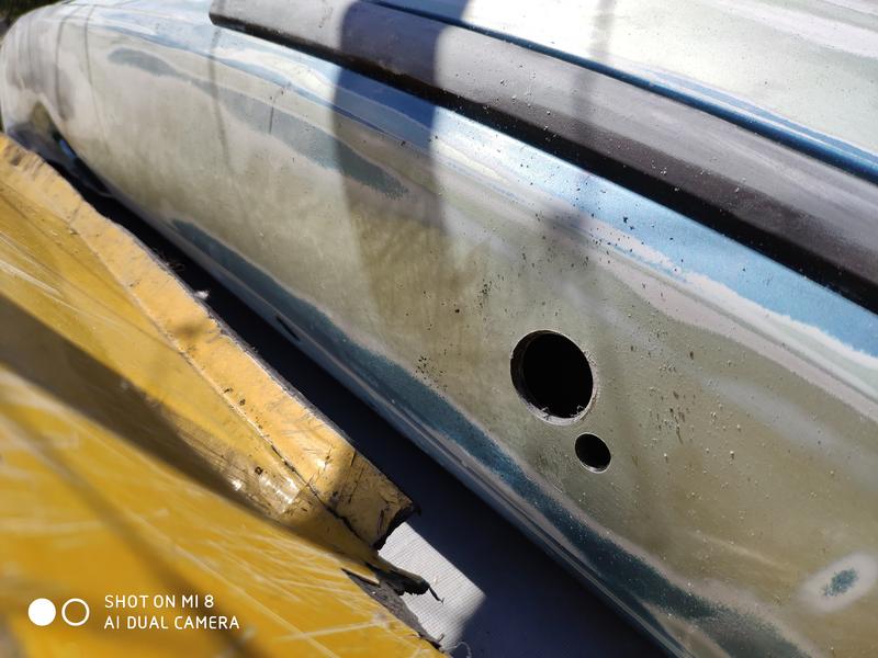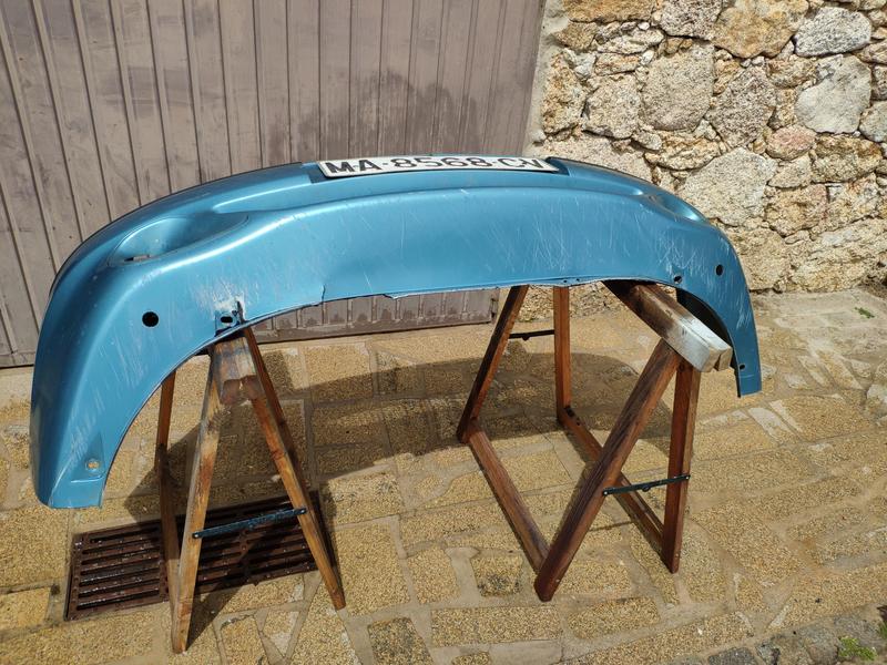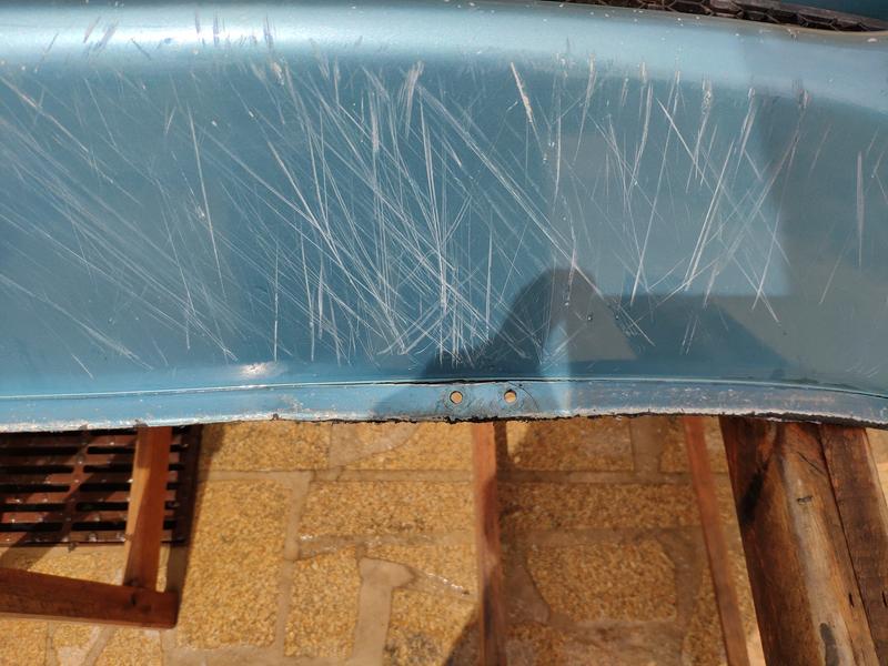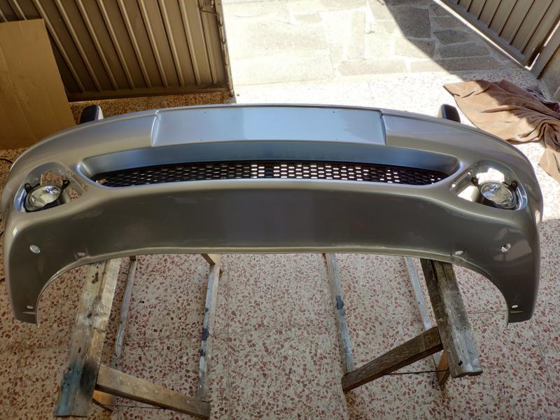 Aquí ya después de una sesión de refinado y lijado, al lado tengo el paragolpes del 145 que usé como patrón para hacerle los taladros para los lavafaros.