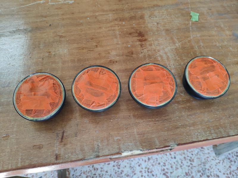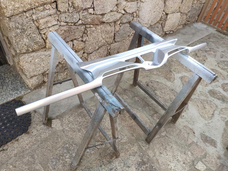 Como suelen venir pintadas al horno, tienen un espesor de pintura bastante bueno como para quitar muchos fallos lijando, eso sí, muchos llegaban hasta el aluminio, así que lijé hasta dónde quedaron bastante bien, un poco de masilla de aluminio en alguno de los toques y le dí una capa de imprimación epoxy, que tiene bastantes sólidos, lijarlas y ya estaban listas para pintar