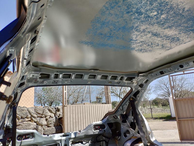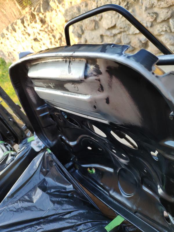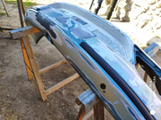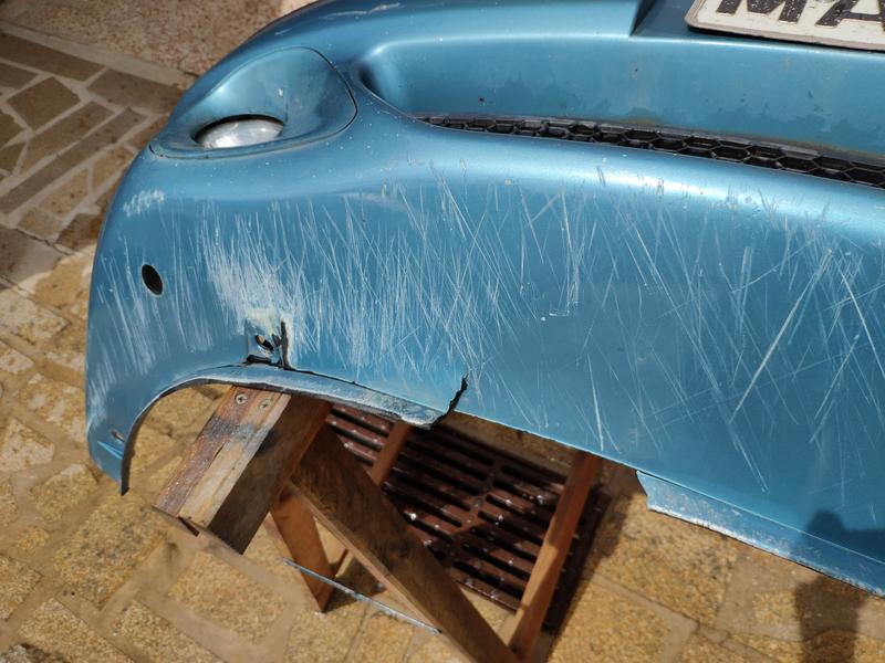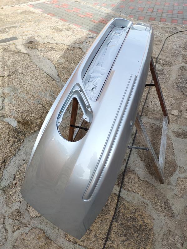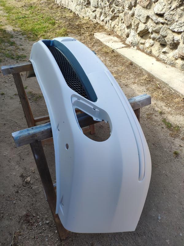 Y ya listo para darle imprimacion para plásticos y una capa de aparejo, también la rejilla que compré de desguace que tenía una pequeña raja que tuve que repararle.