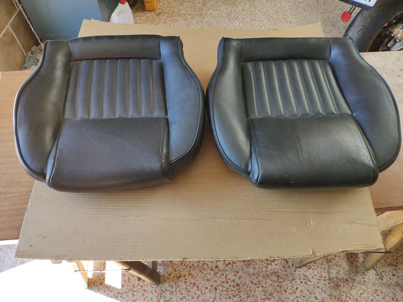 Lo siguiente con lo que me lié fueron los asientos, ya tenía los cojines de los asientos delanteros reparados y sólo me faltaba repasar unos pequeños óxidos en los bastidores de los asientos..un poco rollo porque hubo que tapar muy bien el cuero, pero quedaron bien bien